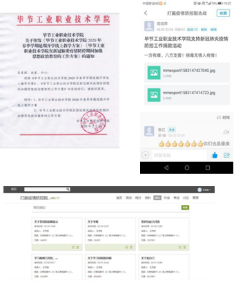 為阻斷疫情向校園蔓延,確保師生生命安全和身體健康。堅(jiān)決遏制疫情蔓延勢(shì)頭,有效防控疫情,根據(jù)教育部、省教育廳、市教育局關(guān)于延期開學(xué)和線上教學(xué)相關(guān)安排部署,為確保疫情防控和線上教學(xué)“兩手抓”,我院成立畢節(jié)工業(yè)職業(yè)技術(shù)學(xué)院2020年春季學(xué)期延期開學(xué)線上教學(xué)工作領(lǐng)導(dǎo)小組,統(tǒng)籌安排學(xué)院春季學(xué)期延期開學(xué)期間線上教學(xué)工作。