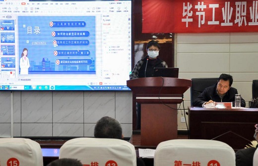 副院長黃河就《畢節(jié)工業(yè)職業(yè)技術(shù)學(xué)院2020年開學(xué)工作方案》《畢節(jié)工業(yè)職業(yè)技術(shù)學(xué)院新冠疫情防控工作方案》《畢節(jié)工業(yè)職業(yè)技術(shù)學(xué)院新冠疫情防控應(yīng)急預(yù)案》進行解讀,要求加強組織管理和統(tǒng)籌調(diào)度,建立健全上下一體聯(lián)動機制,明確職責(zé)分工,確保新學(xué)期開學(xué)疫情防控策略和應(yīng)急處置措施扎實有效實施。