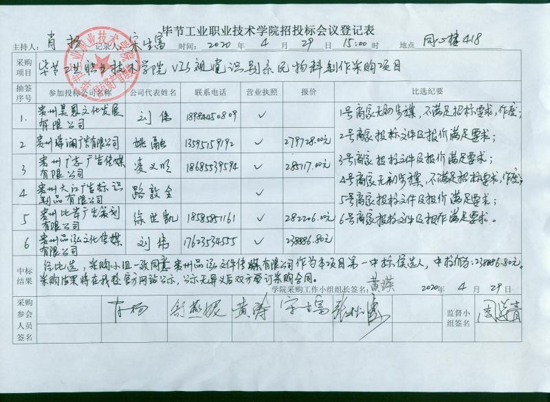 畢節(jié)工業(yè)職業(yè)技術(shù)學(xué)院 VIS視覺識別系統(tǒng)物料制作采購中標公告