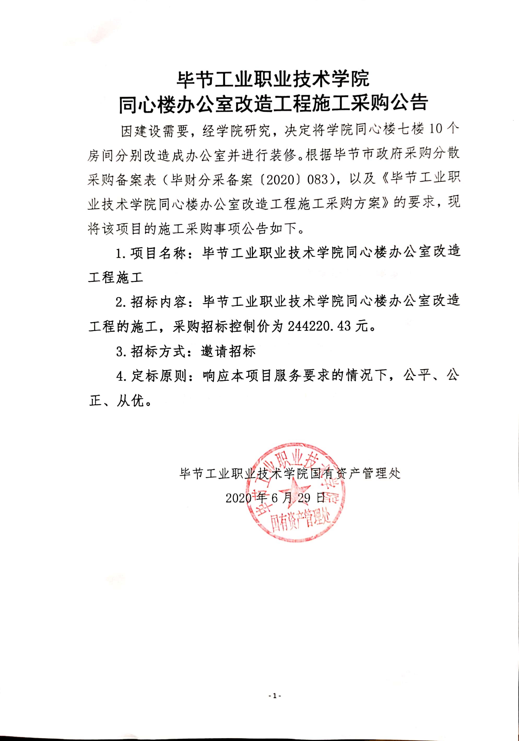 畢節(jié)工業(yè)職業(yè)技術學院同心樓辦公室改造工程施工采購公告