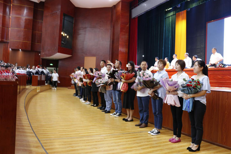(學(xué)生向?qū)W校領(lǐng)導(dǎo)及畢業(yè)班班主任獻(xiàn)花)