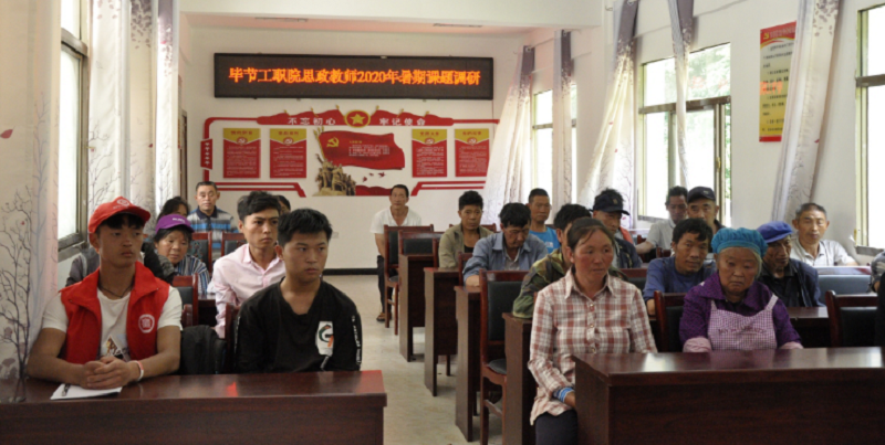 為更好完成省委組織部和市委組織部“貫徹落實習(xí)近平新時代中國特色社會主義思想在改革發(fā)展穩(wěn)定中攻堅克難案例教學(xué)課程開發(fā)”和“貫徹落實習(xí)近平新時代中國特色社會主義思想好課程開發(fā)”工作,畢節(jié)工業(yè)職業(yè)技術(shù)學(xué)院馬克思主義教學(xué)部《攻克深度貧困最后堡壘——從赫章縣安樂溪鄉(xiāng)掛牌督戰(zhàn)看貴州省脫貧攻堅的最后一公里》和《“四類人員"思政課到基層——培養(yǎng)“有技能的思想”、“有思想的技能”的高素質(zhì)人才,教育助力脫貧攻堅》課程開發(fā)組以及我院教師申報畢節(jié)社科聯(lián)立項課題《地方職業(yè)院校助力鄉(xiāng)村振興發(fā)展的策略研究—以畢節(jié)工業(yè)職業(yè)技術(shù)學(xué)院為例》課題組于7月25日赴赫章縣安樂溪鄉(xiāng)、可樂鄉(xiāng)進(jìn)行課程開發(fā)和課題考察調(diào)研。馬克思主義教學(xué)部負(fù)責(zé)人閻潤萍等7名思政課老師參加了此次考察調(diào)研活動。