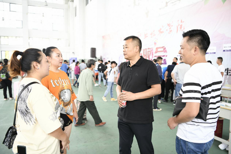 (畢節(jié)工業(yè)職業(yè)技術(shù)學(xué)院黨委副書(shū)記、院長(zhǎng)邱國(guó)援與學(xué)生家長(zhǎng)交談)