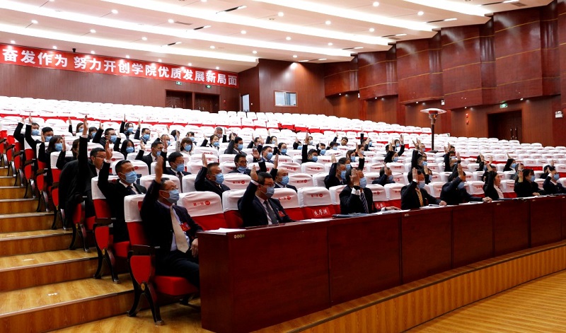 這次大會是在中國特色社會主義進入新時代,決勝全面建成小康社會、決戰(zhàn)脫貧攻堅,抗擊新冠肺炎疫情斗爭取得重大戰(zhàn)略成果,“十三五”規(guī)劃收官的關鍵時刻召開的一次承前啟后、繼往開來的重要會議。大會的主題是:高舉中國特色社會主義偉大旗幟,以習近平新時代中國特色社會主義思想為指導,深入貫徹黨的十九大和十九屆歷次全會精神,全面貫徹全國教育大會精神,團結和帶領廣大師生守正立德樹人初心、創(chuàng)新教育教學改革,擔當為黨育人、為國育才使命,為建設有特色高水平的職業(yè)院校砥礪奮進!