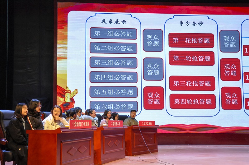 此次活動緊緊圍繞“學(xué)黨史、悟思想、辦實事、開新局”的黨史學(xué)習(xí)教育目標(biāo),以黨史、新中國史、改革開放史、社會主義發(fā)展史為主要內(nèi)容?;顒臃譃轱L(fēng)采展示(必答題)、爭分奪秒(搶答題)、巔峰對決(風(fēng)險題)四個環(huán)節(jié)(必要時進行加賽),同時,在每一環(huán)節(jié)結(jié)束后設(shè)置了現(xiàn)場觀眾互動答題的環(huán)節(jié),增強了大家的互動性和積極性。