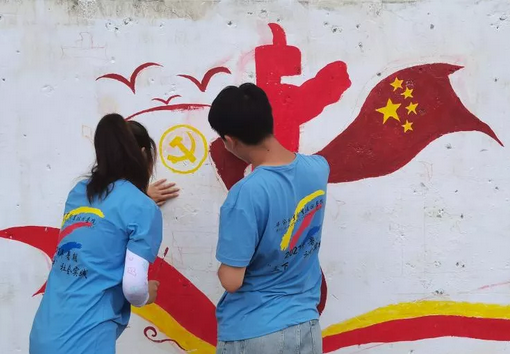 在為期10天的“三下鄉(xiāng)”社會實踐中,實踐隊員們把黨史學習教育帶到了田間地頭家中墻上。實踐隊員們走進田間地頭,和當?shù)剜l(xiāng)親們一起學習交流黨的發(fā)展歷程,到家中聆聽當?shù)亍罢稀焙屯宋槔媳?、老黨員講述他們的親身經(jīng)歷和黨的光輝歷程并宣傳黨的政策,與鄉(xiāng)親們一起溝通鄉(xiāng)村振興的意見和建議。同時,實踐隊員們還將黨的光輝歷史和黨的政策、生態(tài)文明建設(shè)、鄉(xiāng)村振興、惠農(nóng)政策等用墻繪的方式畫在墻上。“實踐隊員們通過這種樸實、接地氣、通俗易懂的方式將黨史學習教育和黨的政策送到了田間地頭、村民家中,打破了傳統(tǒng)的宣講模式,增強了廣大村民振興鄉(xiāng)村的信心。”石丫村駐村書記明正興說。