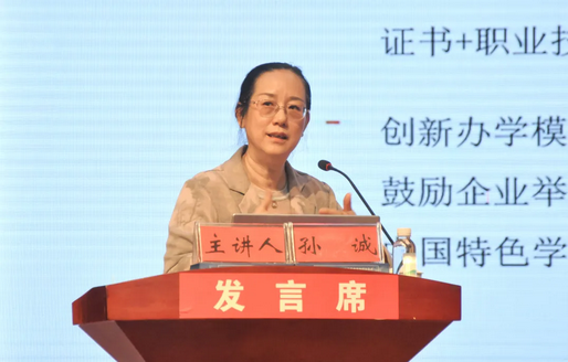 ▲中國教育科學(xué)研究院職業(yè)教育與繼續(xù)教育研究所所長(zhǎng)孫誠作“新時(shí)期職業(yè)教育發(fā)展的時(shí)代背景、內(nèi)涵要義與建設(shè)路徑”專題講座