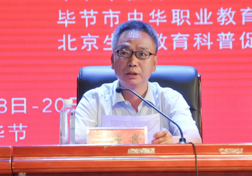 7月20日下午,畢節(jié)市職業(yè)教育中高層干部“提能強(qiáng)質(zhì)——干部培養(yǎng)工程”培訓(xùn)班結(jié)業(yè)典禮在我院會(huì)議中心舉行。中華同心溫暖工程基金會(huì)健康教育事業(yè)教育基金副主任吳昊洋,北京師范大學(xué)教授肖川,首都師范大學(xué)教授田漢族,北京生命教育科普促進(jìn)會(huì)常務(wù)副會(huì)長(zhǎng)兼秘書長(zhǎng)曹專,畢節(jié)市教育局副局長(zhǎng)朱德貴,畢節(jié)工業(yè)職業(yè)技術(shù)學(xué)院繼續(xù)教育部負(fù)責(zé)人閔宇航出席活動(dòng),全體參訓(xùn)學(xué)員300余人參加活動(dòng)。結(jié)業(yè)典禮由畢節(jié)市中華職業(yè)教育社專職副主任夏青主持。