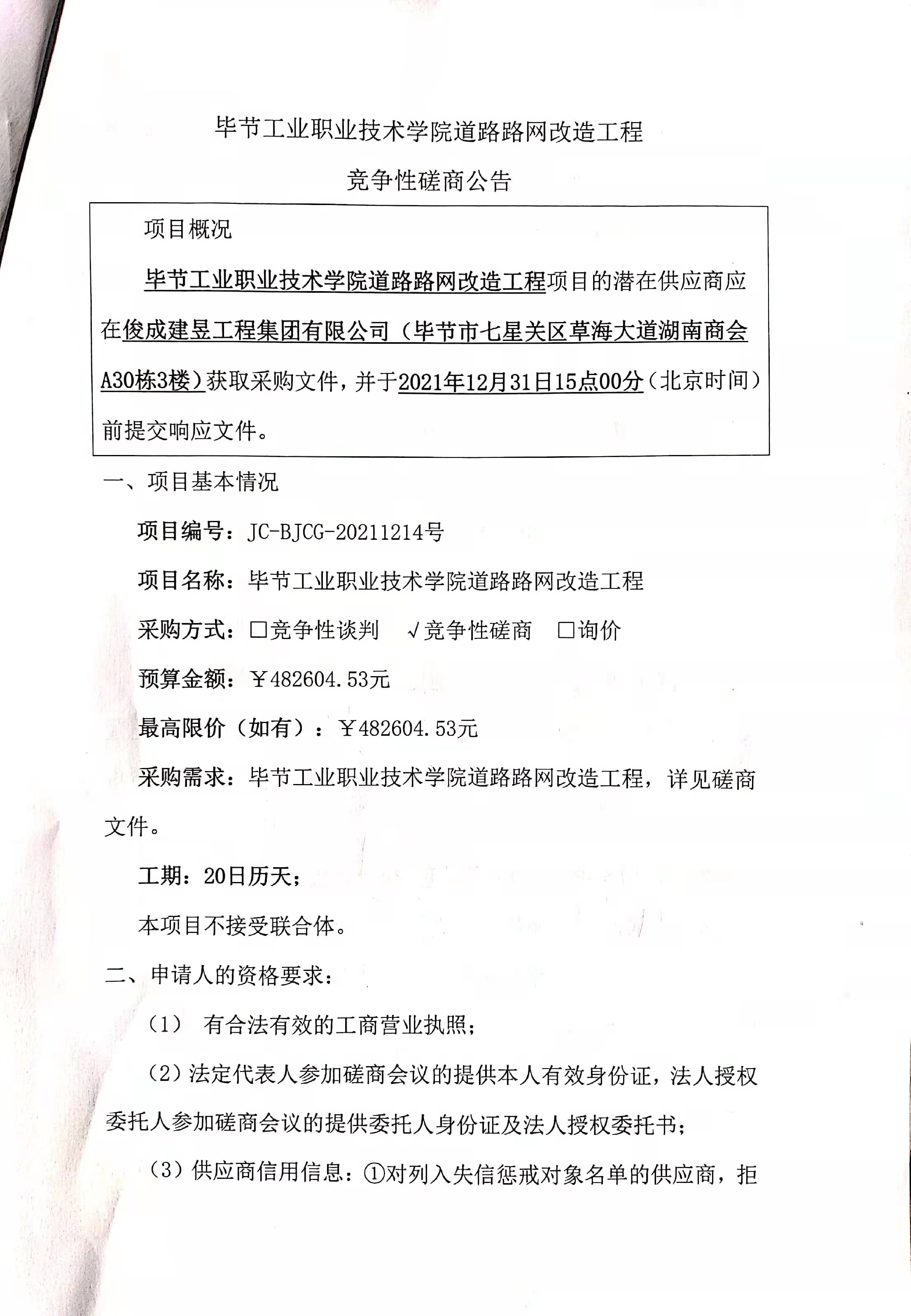 畢節(jié)工業(yè)職業(yè)技術(shù)學(xué)院道路路網(wǎng)改造工程競爭性磋商公告