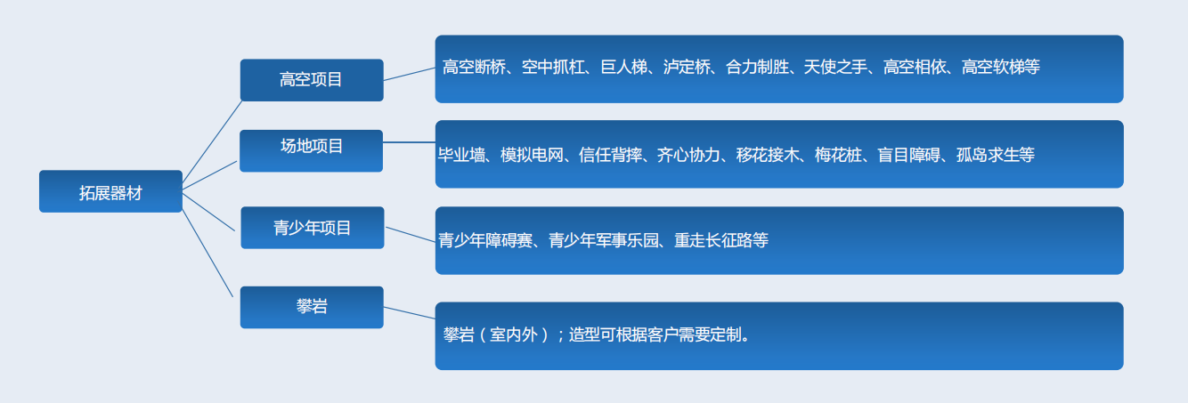 2、項(xiàng)目功能:培養(yǎng)個(gè)體責(zé)任感、奉獻(xiàn)精神,自我挑戰(zhàn)和突破能力;培養(yǎng)行動(dòng)前群策能力,以及調(diào)查研究、認(rèn)真計(jì)劃的精神,學(xué)習(xí)在緊急情況下進(jìn)行有效溝通,激發(fā)創(chuàng)造力;培養(yǎng)在短時(shí)間內(nèi)有計(jì)劃解決問(wèn)題的能力;學(xué)習(xí)目標(biāo)的確立、學(xué)會(huì)為自己負(fù)責(zé),實(shí)現(xiàn)自我監(jiān)控,增強(qiáng)團(tuán)隊(duì)凝聚力;增強(qiáng)個(gè)體的手臂、腰部、腿部力量、身體協(xié)調(diào)能力與平衡力。