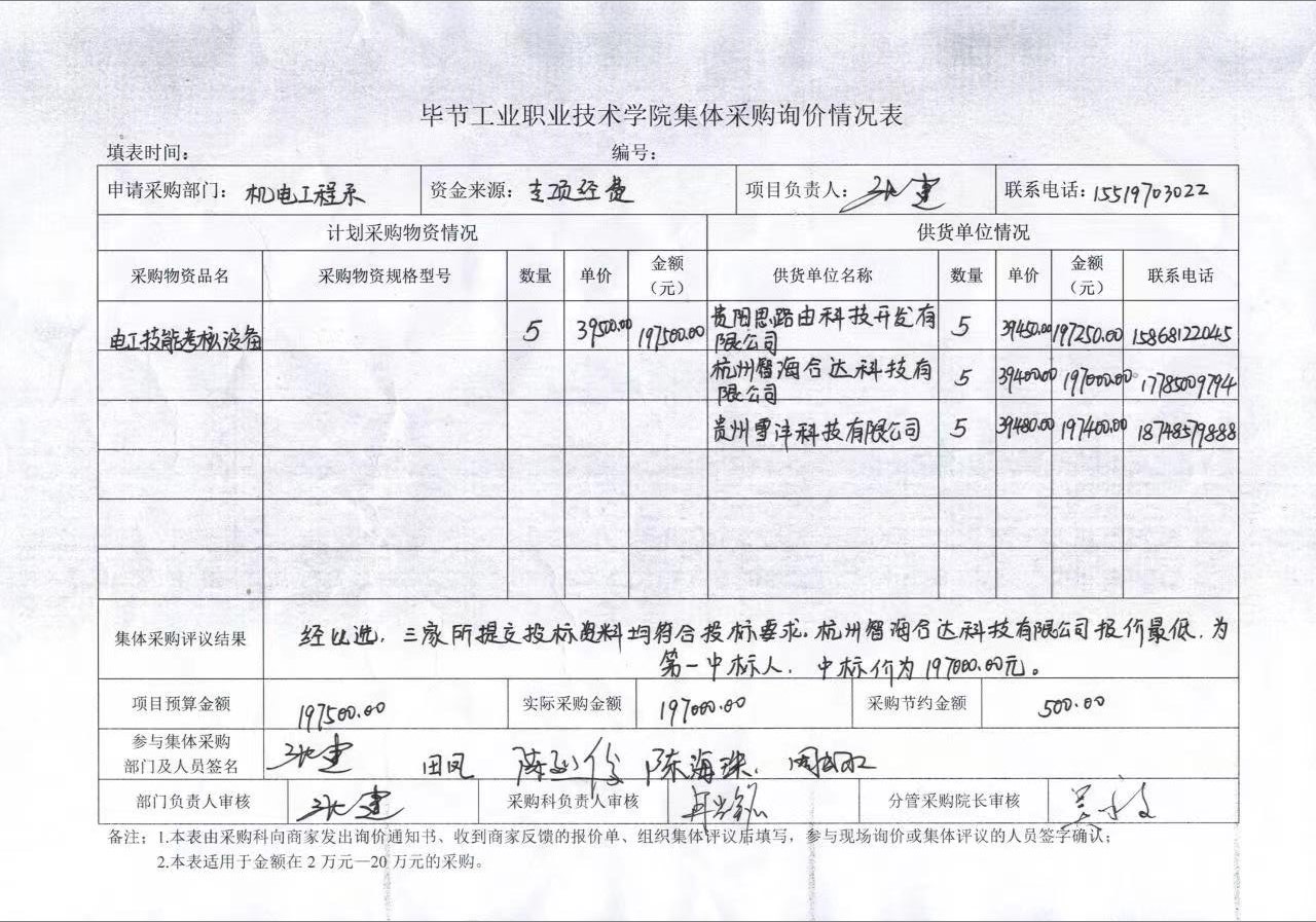 畢節(jié)工業(yè)職業(yè)技術(shù)學(xué)院電工技能考核設(shè)備集體采購詢價情況表公示