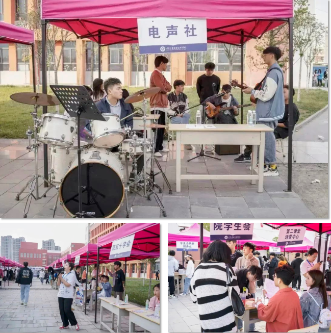 11月7日,學院開展了為期一天的社團招新活動。穿梭在各個社團之間,你會看到精妙絕倫的攝影作品、栩栩如生的繪畫和互相切磋棋藝的同學們;“是的我看見到處是陽光,快樂在校園上空飄揚”,聽!這是電聲社傳來的動聽歌聲……各種各樣吸引人的社團讓現(xiàn)場的小萌新們心動不已。 (社團招新現(xiàn)場) 社團招新現(xiàn)場如火如荼,大家都樂此不疲,充滿了歡聲笑語。為了讓快樂加倍,讓歡笑加倍,學院還為大家準備了黨的二十大答題闖關、新生才藝展示、予青春以夢想青春寄語等豐富多彩的現(xiàn)場活動。 ( 二十大答題闖關、青春寄語活動 ) ( 新生才藝展示活動 ) 光陰似箭,在最后一個才藝展示節(jié)目結束的歡呼聲中,學院的社團招新活動完美落幕,相信大家也都找到了自己心儀的社團,在以后的時間里,相信大家都能在自己的社團學到知識,提高自身的能力。 (社團風采) 一千句招新文案,都不及你的出現(xiàn)。在未來的日子里,期待能與大家一同前行,成就多彩人生,譜寫屬于我們的青春華章。也祝大家在未來三年都擁有一個豐富多彩的大學生活!