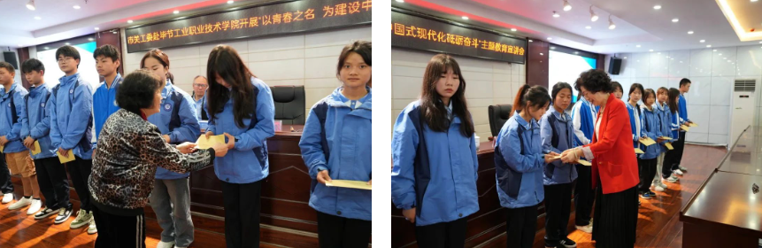 關(guān)工委領(lǐng)導(dǎo)一行實(shí)地考察調(diào)研了校園環(huán)境、文化建設(shè)、校企合作實(shí)訓(xùn)基地、心理健康教育與咨詢中心并詳細(xì)了解了學(xué)院辦學(xué)情況,對(duì)學(xué)院現(xiàn)階段各項(xiàng)工作取得的成效給予了充分肯定。 宣講會(huì)上,潘軍偉以“以青春之名,為建設(shè)中國式現(xiàn)代化砥礪奮斗”為題,從“什么是中國式現(xiàn)代化”、“中國式現(xiàn)代化理論走過的歷程”、“中國式現(xiàn)代化關(guān)鍵是什么”、“如何推進(jìn)中國式現(xiàn)代化”、“以青春之名,為建設(shè)中國式現(xiàn)代化砥礪奮斗”五個(gè)方面,帶領(lǐng)工職院師生從歷史發(fā)展脈絡(luò)的角度出發(fā),全面回顧了近代以來中華民族艱辛的探索和復(fù)興之路。深刻闡釋了中國式現(xiàn)代化是中國共產(chǎn)黨和中國人民長期實(shí)踐探索的成果,是對(duì)中國特色社會(huì)主義道路的繼承與發(fā)展,拓展了發(fā)展中國家走向現(xiàn)代化的途徑,指明了構(gòu)建人類命運(yùn)共同體發(fā)展方向。講座具有很強(qiáng)的理論性、針對(duì)性和指導(dǎo)性,對(duì)與會(huì)師生學(xué)習(xí)理解中國式現(xiàn)代化,進(jìn)一步堅(jiān)定政治立場(chǎng)、樹立正確的人生觀價(jià)值觀、勇?lián)褡鍙?fù)興重任具有深刻的啟發(fā)和引導(dǎo)意義。 潘軍偉強(qiáng)調(diào),中國式現(xiàn)代化為廣大青年提供了廣闊的舞臺(tái),新時(shí)代技能青年要堅(jiān)持黨的領(lǐng)導(dǎo),牢記習(xí)近平總書記的殷切囑托,傳承“五四”精神,既要有遠(yuǎn)大的理想和抱負(fù),又要有腳踏實(shí)地的實(shí)干精神。要認(rèn)真學(xué)習(xí)專業(yè)技能,練就過硬的本領(lǐng)、強(qiáng)健的體魄,積極參加優(yōu)秀美育、勞動(dòng)教育活動(dòng),以時(shí)不我待、強(qiáng)國有我、只爭朝夕的緊迫感,為建設(shè)社會(huì)主義現(xiàn)代化強(qiáng)國砥礪奮斗,書寫精彩人生。 講座結(jié)束后,市關(guān)工委領(lǐng)導(dǎo)周長琦、杜娟為學(xué)院20名家庭貧困學(xué)生發(fā)放慰問金,鼓勵(lì)他們努力學(xué)習(xí),早日成為黨和國家需要的技能型人才。