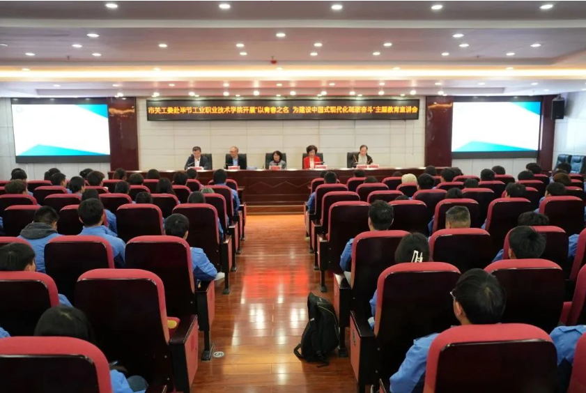 4月28日,畢節(jié)市關(guān)工委主任周長琦、副主任杜娟、謝正發(fā)、潘軍偉一行赴我院開展主題教育宣講并實(shí)地調(diào)研我院辦學(xué)情況。學(xué)院黨委委員、副院長吳家文,黨委委員、組織部長申開谷,工會(huì)、婦聯(lián)主席李淑文及相關(guān)部門人員陪同調(diào)研。宣講會(huì)由吳家文主持,學(xué)院師生代表200余人聆聽宣講。