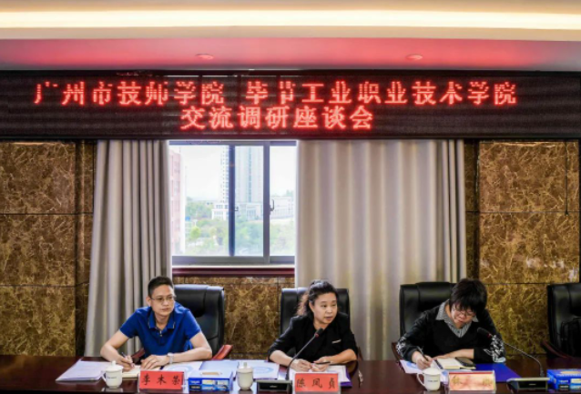 5月6日,廣州市技師學(xué)院赴我院開展校校合作交流調(diào)研座談會。廣州市技師學(xué)院副院長陳鳳貞,技能培訓(xùn)鑒定處副主任林琳、李木榮,新能源汽車檢測與維修專業(yè)帶頭人黃輝鍍;學(xué)院黨委委員、副院長黃瑛,汽車工程系黨總支書記張禾,汽車工程系負(fù)責(zé)人龔明勝及相關(guān)部門負(fù)責(zé)人、教師參加會議。