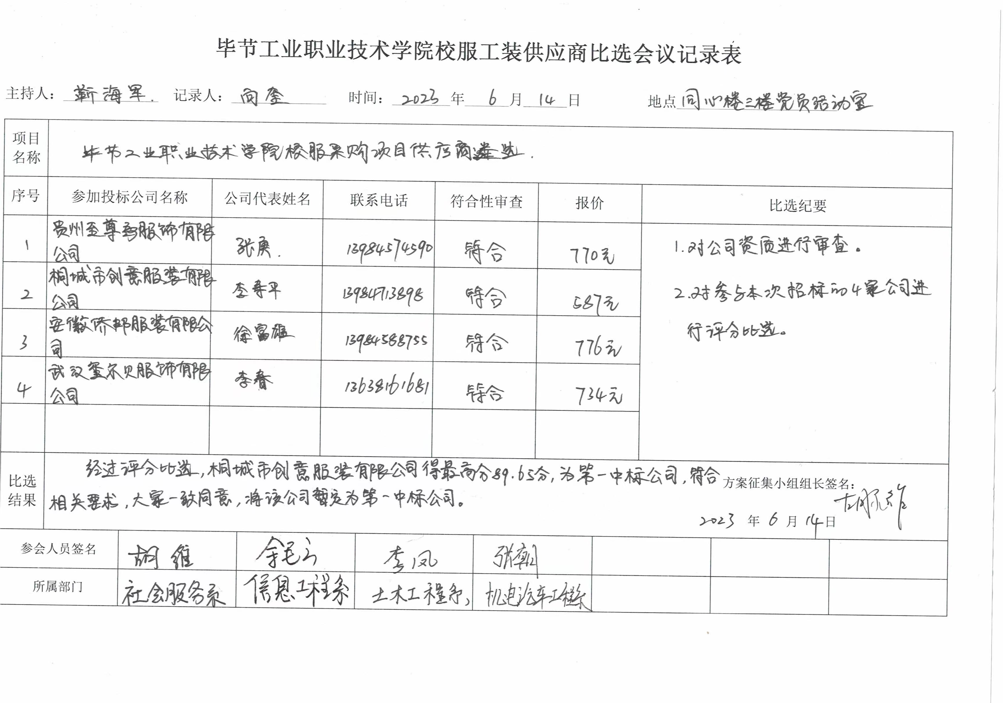 畢節(jié)工業(yè)職業(yè)技術(shù)學(xué)院校服采購(gòu)項(xiàng)目供應(yīng)商遴選中標(biāo)公告