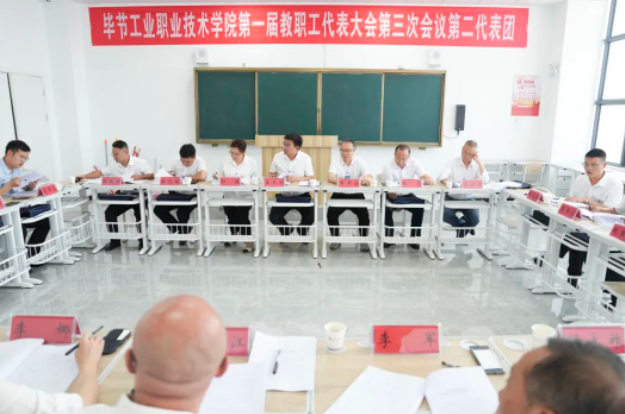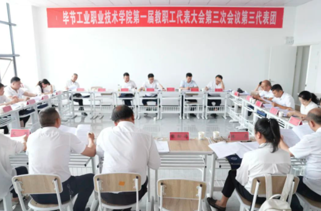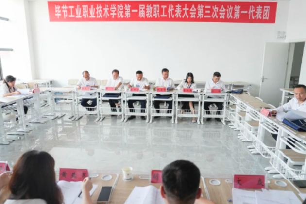 大會(huì)還聽取了《畢節(jié)工業(yè)職業(yè)技術(shù)學(xué)院2022年財(cái)務(wù)預(yù)算執(zhí)行情況和2023年財(cái)務(wù)預(yù)算情況報(bào)告》《畢節(jié)工業(yè)職業(yè)技術(shù)學(xué)院工會(huì)工作報(bào)告》《畢節(jié)工業(yè)職業(yè)技術(shù)學(xué)院第一屆第二次教職工代表大會(huì)提案落實(shí)情況及第一屆第三次教職工代表大會(huì)提案征情況報(bào)告》,審議了《畢節(jié)工業(yè)職業(yè)技術(shù)學(xué)院專業(yè)技術(shù)職務(wù)評(píng)聘管理暫行辦法》《畢節(jié)工業(yè)職業(yè)技術(shù)學(xué)院年度部門綜合考核實(shí)施方案》。期間,三個(gè)代表團(tuán)與會(huì)代表紛紛以高度的責(zé)任感和飽滿的主人翁精神,緊緊圍繞中心工作,對(duì)大會(huì)相關(guān)《報(bào)告》《辦法》《方案》及相關(guān)《決議(草案)》進(jìn)行認(rèn)真討論和審議,提出修改意見和建議,積極為學(xué)院發(fā)展建言獻(xiàn)策。