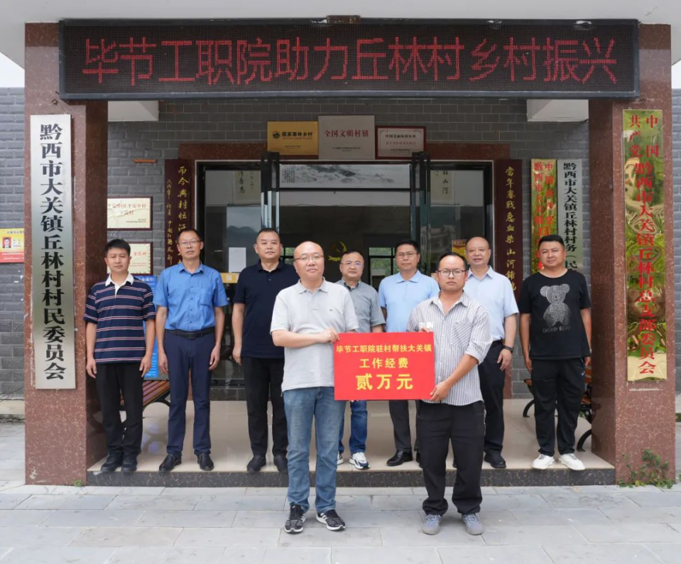 調(diào)研組一行實地走訪調(diào)研了丘林村紅軍渡口、培訓中心等地,看望學院暑期“三下鄉(xiāng)”赴丘林村社會實踐師生和學院駐村干部,詳細了解大關鎮(zhèn)、丘林村鄉(xiāng)村振興發(fā)展情況,共同謀劃推進鄉(xiāng)村振興具體措施并召開調(diào)研座談會。 會上,調(diào)研組一行聽取大關鎮(zhèn)和丘林村推進鄉(xiāng)村振興情況,了解發(fā)展規(guī)劃和旅游業(yè)發(fā)展、農(nóng)特產(chǎn)業(yè)發(fā)展、鄉(xiāng)村治理等方面面臨的困難和問題。 李涌表示,近年來,丘林村在黔西市委市政府、大關鎮(zhèn)黨委政府的領導下,在鄉(xiāng)村建設發(fā)展治理和產(chǎn)業(yè)發(fā)展等方面取得良好成效,發(fā)展迅速。畢節(jié)工職院將充分發(fā)揮自身優(yōu)勢,以打造示范為目的助力丘林村鄉(xiāng)村振興高質(zhì)量發(fā)展。他強調(diào),丘林村要堅持旅游發(fā)展定位,根據(jù)地方特點發(fā)揮資源優(yōu)勢、創(chuàng)新發(fā)展理念,緊盯發(fā)展目標,充分依托山水自然風光,深挖紅色文化資源,豐富完善旅游線路,提升景區(qū)環(huán)境和服務等級,改善基礎設施,打造特色民宿、特色美食,在鄉(xiāng)村旅游產(chǎn)業(yè)上持續(xù)發(fā)力,走出一條具有時代特征、地域特點的文化旅游與鄉(xiāng)村振興之路;要大力發(fā)展農(nóng)業(yè)經(jīng)濟,突出科學種植、改良品種、提高品質(zhì),促進經(jīng)濟林高產(chǎn)優(yōu)質(zhì)發(fā)展;要充分利用地域及氣候優(yōu)勢,打造季節(jié)經(jīng)濟作物,發(fā)展季節(jié)特色農(nóng)產(chǎn)品,同時制定相應政策措施,引進龍頭企業(yè),做優(yōu)做強深加工,打造特色鮮明的旅游特產(chǎn),全面形成文化、產(chǎn)業(yè)與旅游融合發(fā)展的良好局面。 邱國援介紹了學院情況并表示,丘林村要充分利用當?shù)刭Y源、區(qū)位、文化優(yōu)勢,做好規(guī)劃、設計和管理,全面推進鄉(xiāng)村旅游業(yè)和產(chǎn)業(yè)發(fā)展。下一步,學院將充分發(fā)揮優(yōu)勢,在產(chǎn)業(yè)打造、組織聯(lián)建、產(chǎn)品營銷、人才培養(yǎng)、交流協(xié)作等方面與丘林村形成合力,加大對鄉(xiāng)村人才、技能技術等方面支持,深入開展組織聯(lián)建,助力拓寬鄉(xiāng)村企業(yè)合作銷售渠道,打造特色突出、設施完善的紅色教育基地和學生社會實踐基地,引進企業(yè)參與鄉(xiāng)村振興,為推動鄉(xiāng)村經(jīng)濟社會發(fā)展提供智力、資源和平臺支持,實現(xiàn)校地互利共贏、共同發(fā)展。 各部門負責人就發(fā)揮職能服務丘林村鄉(xiāng)村振興進行了交流發(fā)言。 會后,學院與丘林村舉行了畢節(jié)工業(yè)職業(yè)技術學院思政實踐教育基地、學生社會實踐基地授牌儀式,并劃撥駐村工作經(jīng)費2萬元。