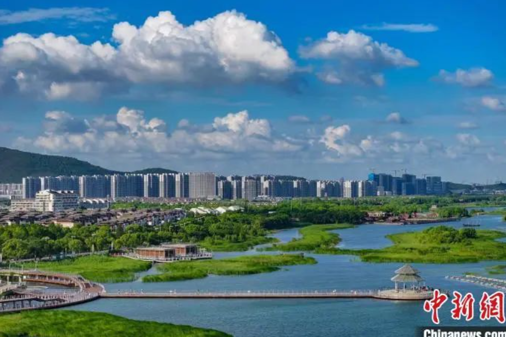 資料圖:航拍蘇州太湖湖濱國家濕地公園,藍(lán)天碧水生態(tài)美。泱波 攝