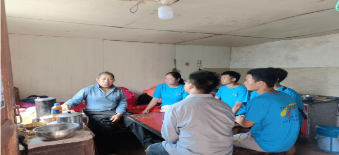 圖為指導老師帶著實踐小分隊對村民的住戶進行考察