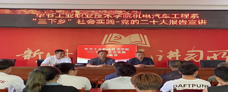 2023年7月4日-2023年7月11日,畢節(jié)工業(yè)職業(yè)技術學院機電汽車工程系社會實踐團隊在畢節(jié)工職業(yè)學院領導的大力支持下,在學院團委的號召下,在系部領導及團總支的精密部署下,前往大方縣響水鎮(zhèn)沙灣村開展以“學習二十大 永遠跟黨走 奮進新征程”為主題的社會實踐活動。