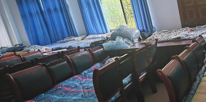 在沙灣村村委的極力支持下,實踐團隊打地鋪、四支團隊輪流進行外出采買物資,做飯。