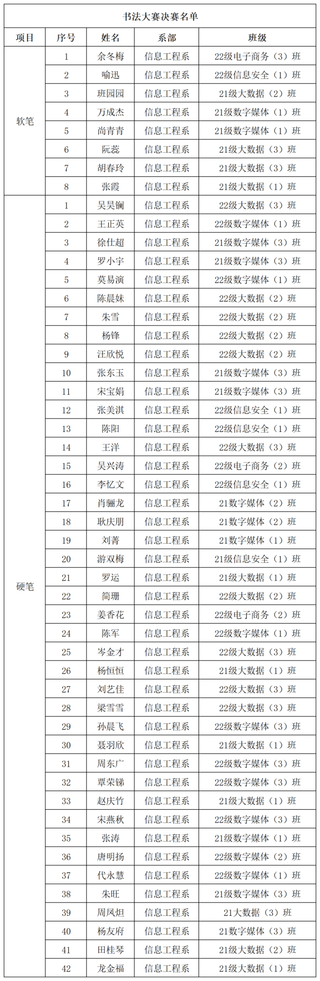 信息工程系開(kāi)展書(shū)法大賽初賽