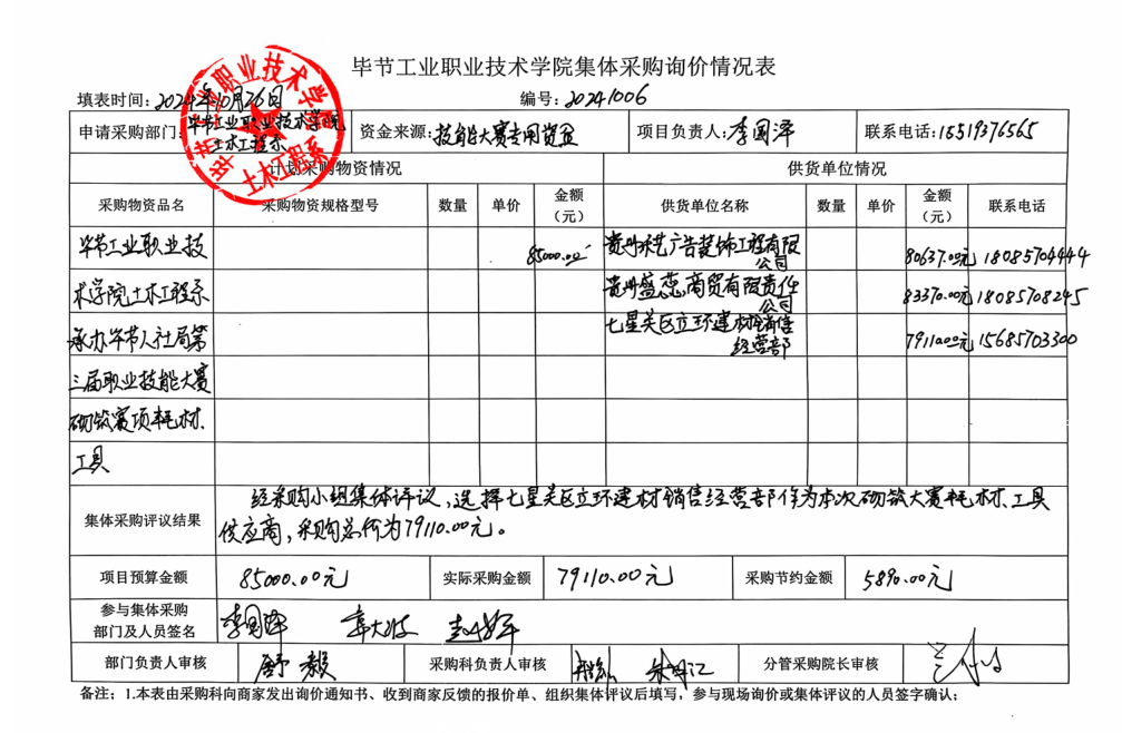 土木工程系承辦畢節(jié)市人社局第三屆職業(yè)技能大賽混凝土建筑賽項耗材、工具詢價情況公告