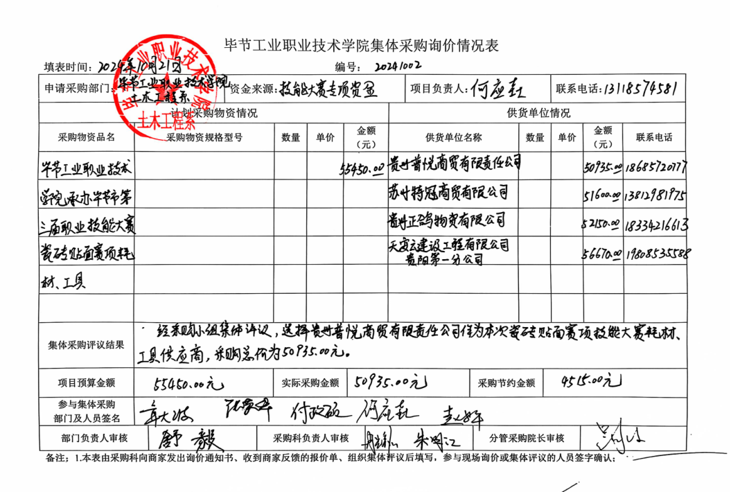 土木工程系承辦畢節(jié)市人社局第三屆職業(yè)技能大賽瓷磚貼面賽項耗材、工具詢價情況公告