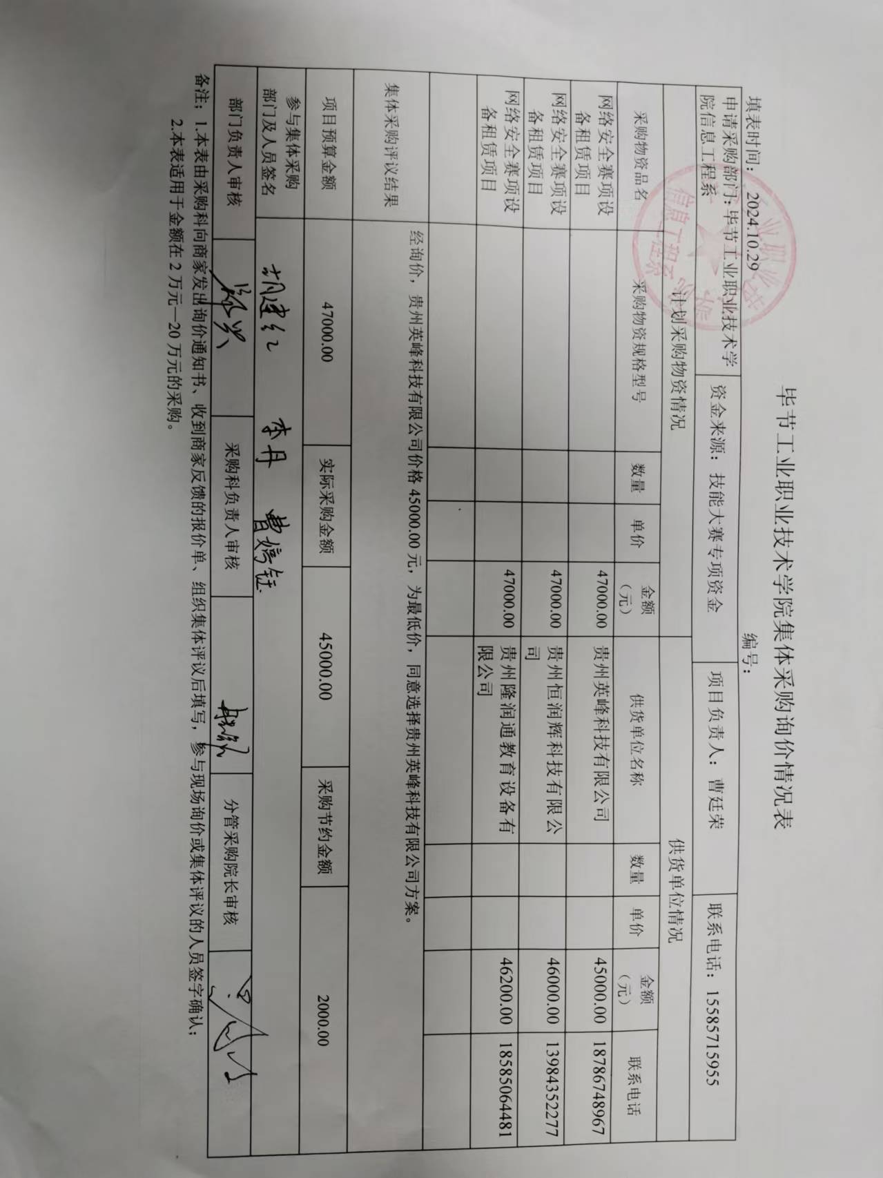 畢節(jié)工業(yè)職業(yè)技術(shù)學(xué)院網(wǎng)絡(luò)安全賽項(xiàng)租賃項(xiàng)目詢價(jià)結(jié)果公示