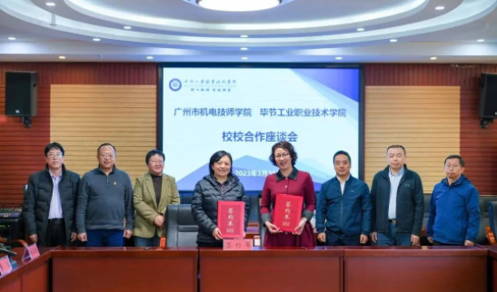 3月30日,廣州市機(jī)電技師學(xué)院與畢節(jié)工業(yè)職業(yè)技術(shù)學(xué)院校校合作座談會(huì)暨框架協(xié)議簽訂儀式在學(xué)院同心樓七樓會(huì)議室舉行。廣州機(jī)電技師學(xué)院副院長(zhǎng)謝黧、校企辦主任陳移新、實(shí)訓(xùn)中心主任王治平、培訓(xùn)鑒定處主任盤亮星、 培訓(xùn)鑒定處部長(zhǎng)曹乃龍,學(xué)院黨委委員、副院長(zhǎng)黃瑛、汽車工程系黨總支書記張禾、機(jī)電工程系負(fù)責(zé)人張建及相關(guān)專業(yè)教師代表參加座談,會(huì)議由張禾主持。