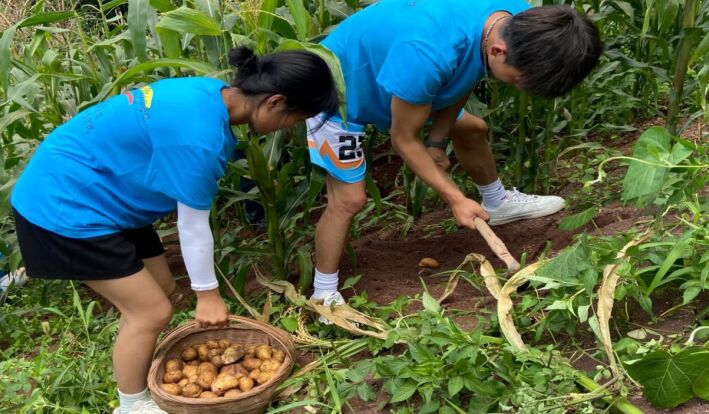 圖為點(diǎn)點(diǎn)宣傳隊(duì)幫助殘疾、空巢老人干農(nóng)活