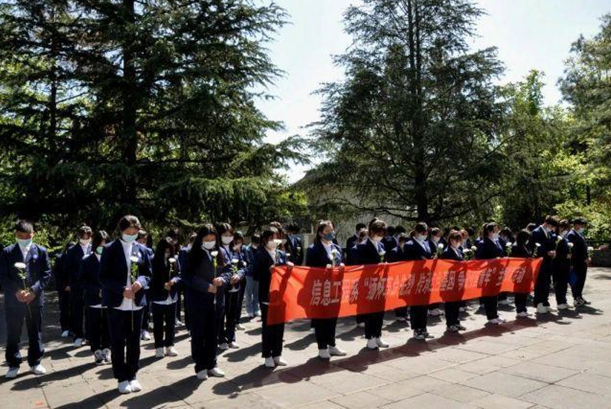 活動在莊嚴(yán)肅穆的國歌聲中拉開了序幕。團員代表向革命烈士敬獻花籃,全體老師、同學(xué)向烈士深鞠三躬,肅立默哀,寄托對革命烈士的無限緬懷與哀思,以表對英烈的崇高敬意。
