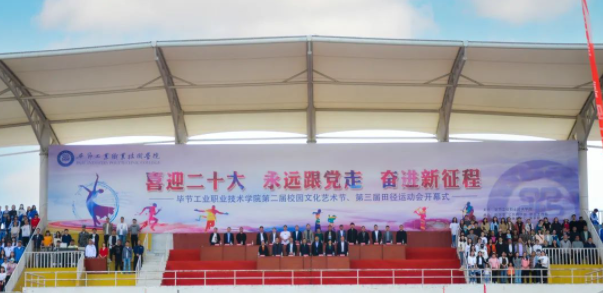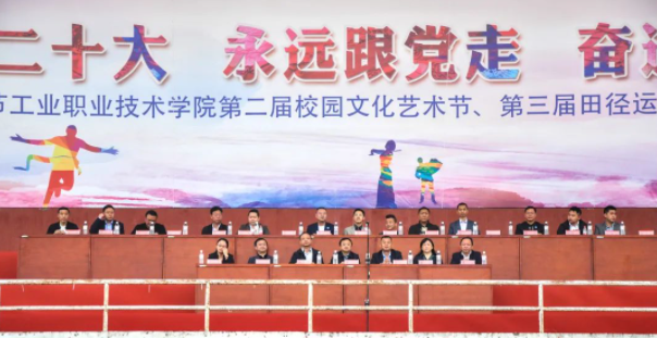 黨委委員、副院長黃瑛致開幕辭,她代表學(xué)校黨委對運動會、藝術(shù)節(jié)開幕表示祝賀,向辛勤付出的全體運動員、裁判員及工作人員致以誠摯的感謝。隨后,學(xué)院黨委副書記、院長邱國援宣布畢節(jié)工業(yè)職業(yè)技術(shù)學(xué)院第二屆校園文化藝術(shù)節(jié)、第三屆田徑運動會開幕!