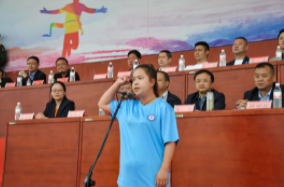 緊接著,運動員代表與裁判代表上臺宣誓,表達(dá)了他們對體育精神的嚴(yán)肅態(tài)度,并表示將在接下來的比賽中遵守比賽規(guī)則,力求賽出水平、賽出風(fēng)格、賽出成績。