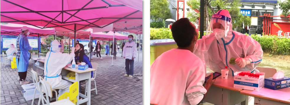 你把手搓了又搓 小心翼翼地把棉簽輕輕攪動 宛如初為人母的媽媽 賜予孩子天使般的愛 向你致敬,可親可愛的抗疫人