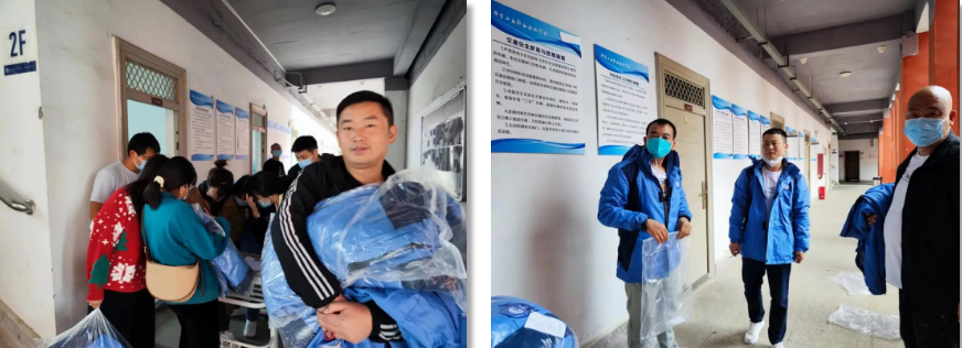 當(dāng)實(shí)施靜默管理后,我院80余名教職工連夜趕回學(xué)校,他們勇毅逆行、不畏風(fēng)險(xiǎn),義無反顧地奮戰(zhàn)在抗擊疫情的一線,他們不僅為全院師生帶來感動(dòng),更為疫情防控注入必勝的決心。由于時(shí)間緊、任務(wù)重,他們大多數(shù)來得匆忙,恰遇氣溫驟降,教職工們著裝單薄、無換洗衣物便成了大問題。桐城市創(chuàng)意服裝有限公司得知情況后,立即決定將為22級(jí)新生準(zhǔn)備的校服中拿出沖鋒衣80余件無償捐獻(xiàn)給學(xué)院抗疫一線教職工保暖所用。