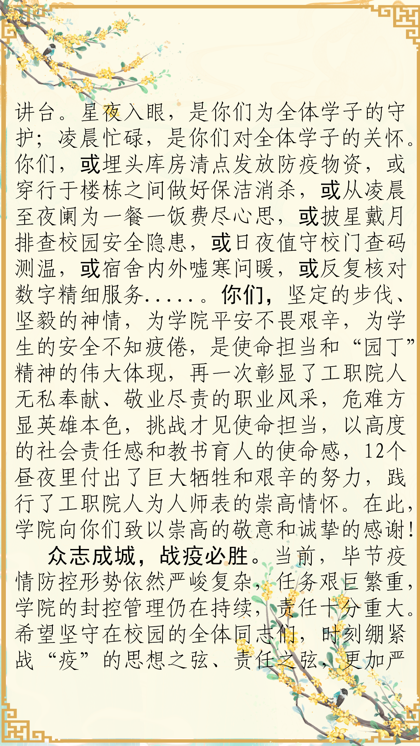 致堅守校園疫情防控的全體教職工的一封信