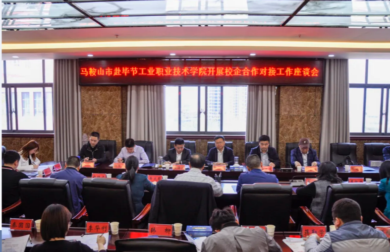 2021年3月31日,馬鞍山市人社局黨組書記、局長李懷東一行攜當?shù)仄髽I(yè)家代表赴我院開展校企合作座談會。畢節(jié)工業(yè)職業(yè)技術學院黨委副書記付善華、黨委委員、副院長黃瑛、黨委委員、副院長黃文碧及相關部門負責人出席會議,畢節(jié)市人社局黨組成員、副局長王孕秋陪同參與活動。