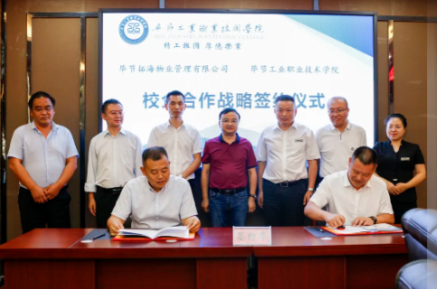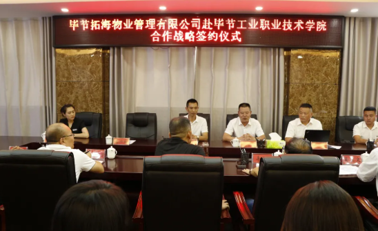 為深入貫徹落實習近平總書記對技能人才工作重要指示精神,切實做好新時代技能人才工作,9月3日,畢節(jié)拓海物業(yè)管理有限公司與畢節(jié)工業(yè)職業(yè)技術學院校企合作戰(zhàn)略協(xié)議簽訂儀式在學院同心樓三樓會議室舉行。畢節(jié)拓海物業(yè)管理有限公司總經理楊月強、常務副總經理邱鋒一行,學院黨委書記李涌,黨委副書記、院長邱國援,黨委委員、副院長吳家文、相關部門負責人及教師代表出席儀式。簽約儀式由邱國援主持。