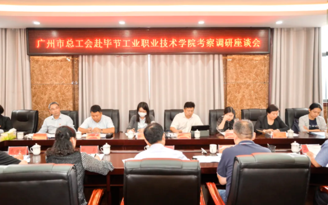 2020年6月22日下午,廣州市總工會(huì)生活保障部部長(zhǎng)、一級(jí)調(diào)研員楊霽及廣州市企業(yè)家一行赴我院進(jìn)行考察調(diào)研并召開(kāi)座談會(huì)。畢節(jié)市總工會(huì)黨組書(shū)記陳明江、黨組成員、副主席彭菊、職工權(quán)益保障部部長(zhǎng)廖建明、服務(wù)職工中心副主任胡妍妍陪同調(diào)研座談。院長(zhǎng)邱國(guó)援、副院長(zhǎng)黃瑛、吳家文、黃文碧,工會(huì)主席、學(xué)生處、招生就業(yè)處、各系部負(fù)責(zé)人、學(xué)生代表參與座談。座談會(huì)由院長(zhǎng)邱國(guó)援主持。